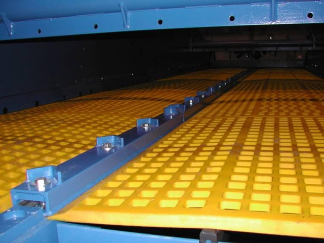 按聚氨酯筛板结构形式分为四种:镶嵌式,螺栓联接,压条联结,筛钩联结;例如压条连接式:请先将聚氨酯筛板放置筛面上,然后根据筛子的支撑梁结构进行安装,福建朝宗新材料科技有限公司专业生产高质量的聚氨酯筛网,橡胶筛网,聚氨酯衬板,聚氨酯托辊,旋流器,渣浆泵聚氨酯叶轮护套以及其他产品,欢迎前来洽谈:13666016619